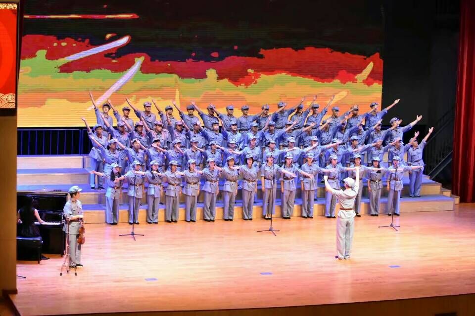 此次比赛中,合唱队员们身着红军军装,带着蓬勃向上的朝气亮相比赛现场。以《保卫黄河》和《黄水谣》的组合作为演唱曲目,合唱队员分成男高音、男低音、女高音、女低音四个声部。在指挥李皓、领唱何瑛琪的带领下,四个声部配合默契,《保卫黄河》气势雄伟,《黄水谣》婉转抒情,完美地演绎了民族风情和革命精神的结合。合唱队伍没有使用音乐伴奏,而是采取现场配乐的形式,由刘彦秀演奏钢琴,任仲行演奏小提琴,陈万戌演奏双簧管,由左宇晴进行配舞。在动人的伴奏声中,整齐的歌声响彻整个大厅,震撼了台下的所有观众,并在所有参赛队伍中排名靠前,最终荣获二等奖。